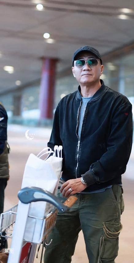 一旁的胡军,穿着深色外套,戴着帽子和口罩,依旧是熟悉的硬汉气场,身姿挺拔,气场十足。