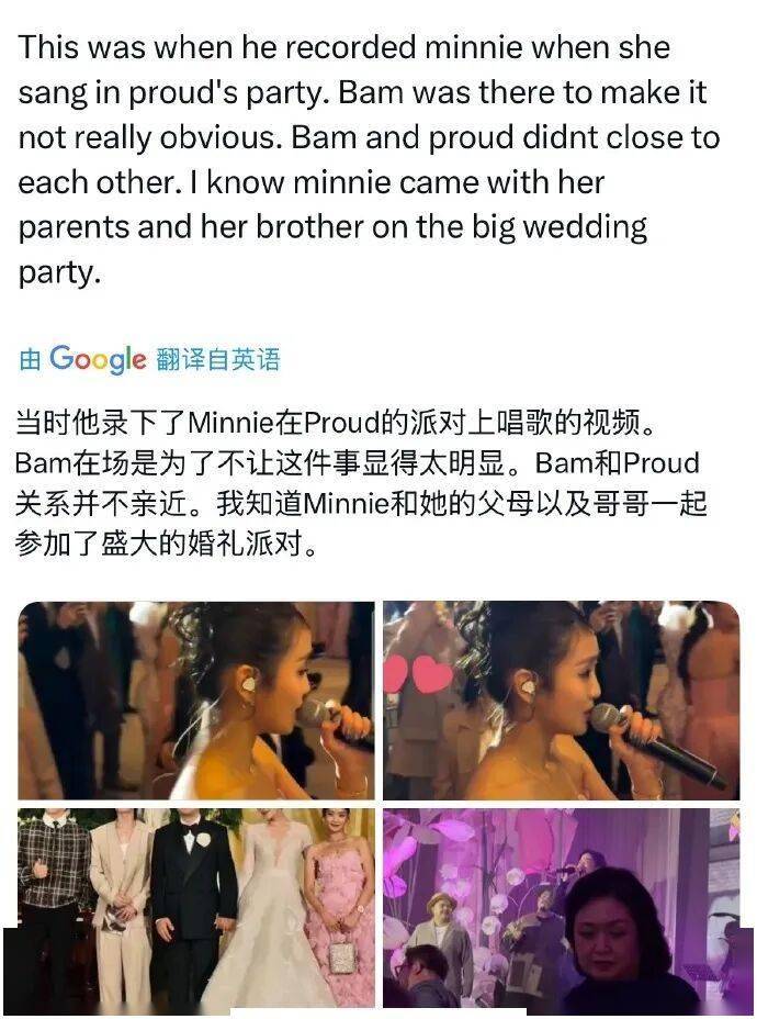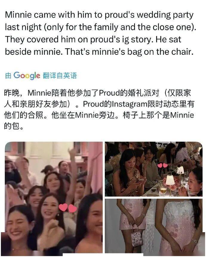 Minnie与Tytan均为泰国籍艺人,曾于2023年合作音乐作品,此前多次在朋友聚会、婚礼等公开场合同框,互动被解读为正常互动。
