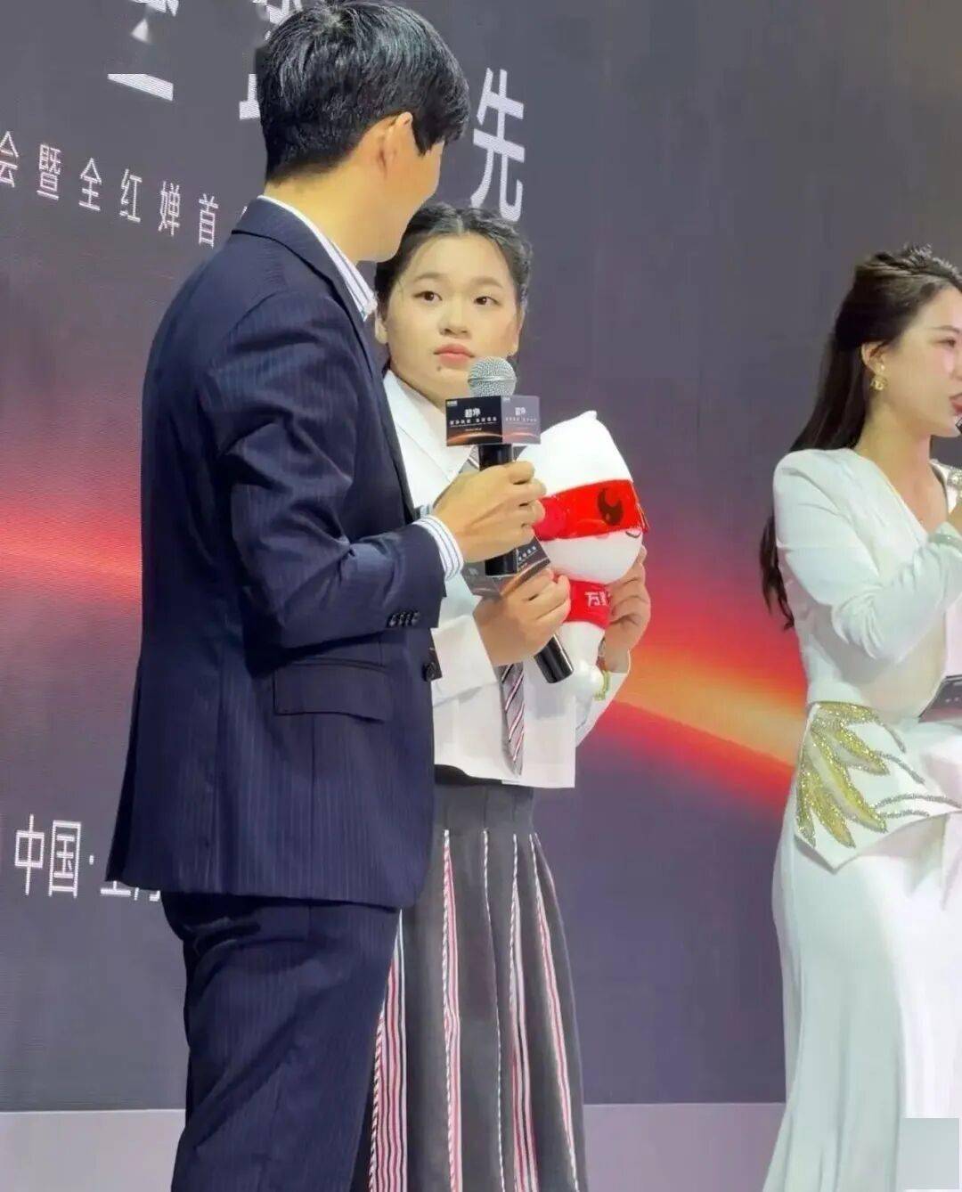 此刻的她,眼神清澈而坚定,嘴角挂着淡淡的微笑,整个人散发着一种大方得体的气质,长发披肩的造型,不仅没有掩盖她原本的灵动,反而中和了她身上那股子“假小子”的冲劲。