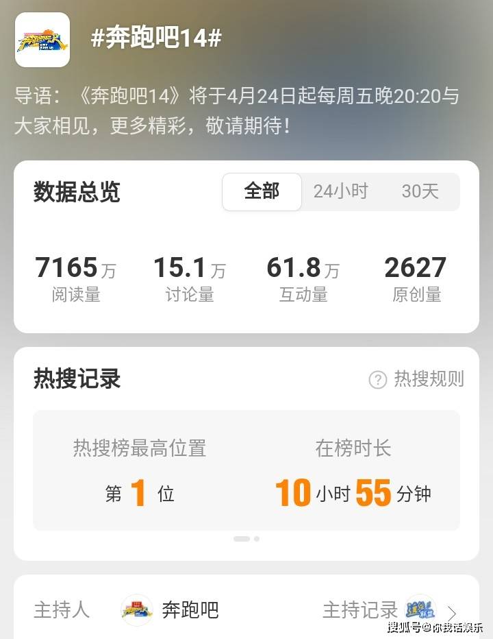 力求给观众最为美好的观感体验!对此,网友们纷纷关注《奔跑吧14》话题消息!这一话题冲上热搜!话题阅读量达到7165万,讨论量15.1万,互动量61.8万。看来,《奔跑吧14》节目非常令人期待!一档好综艺,就是这样引人关注!