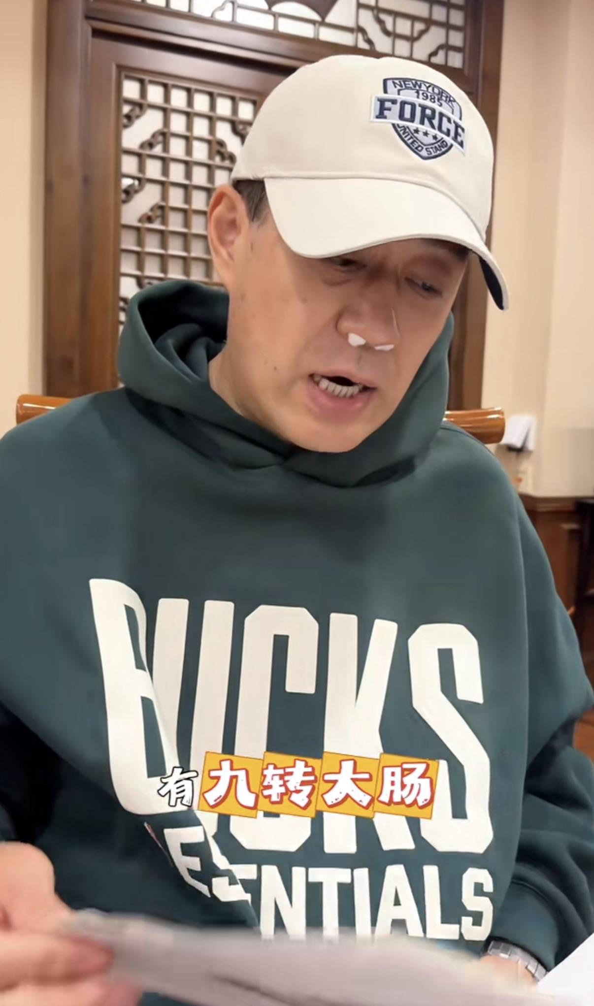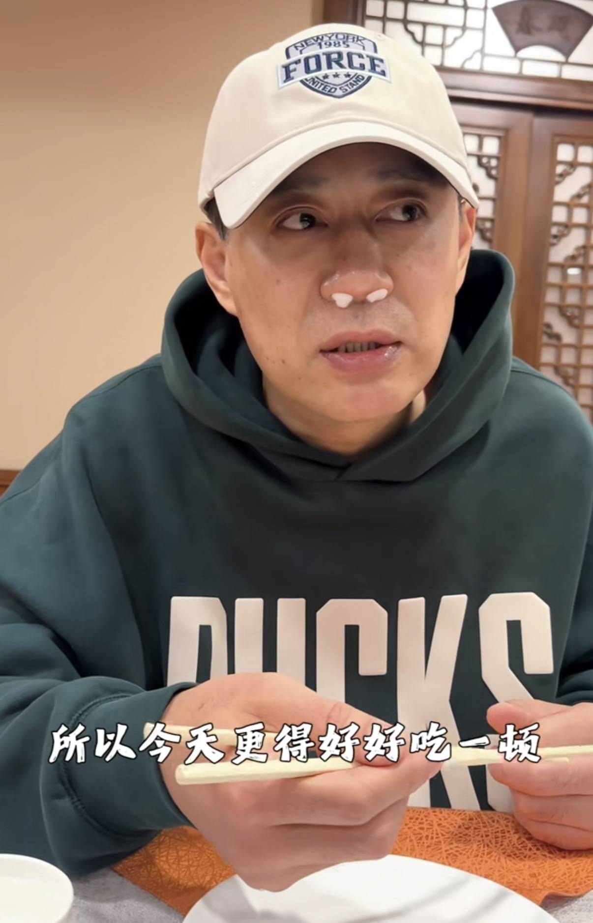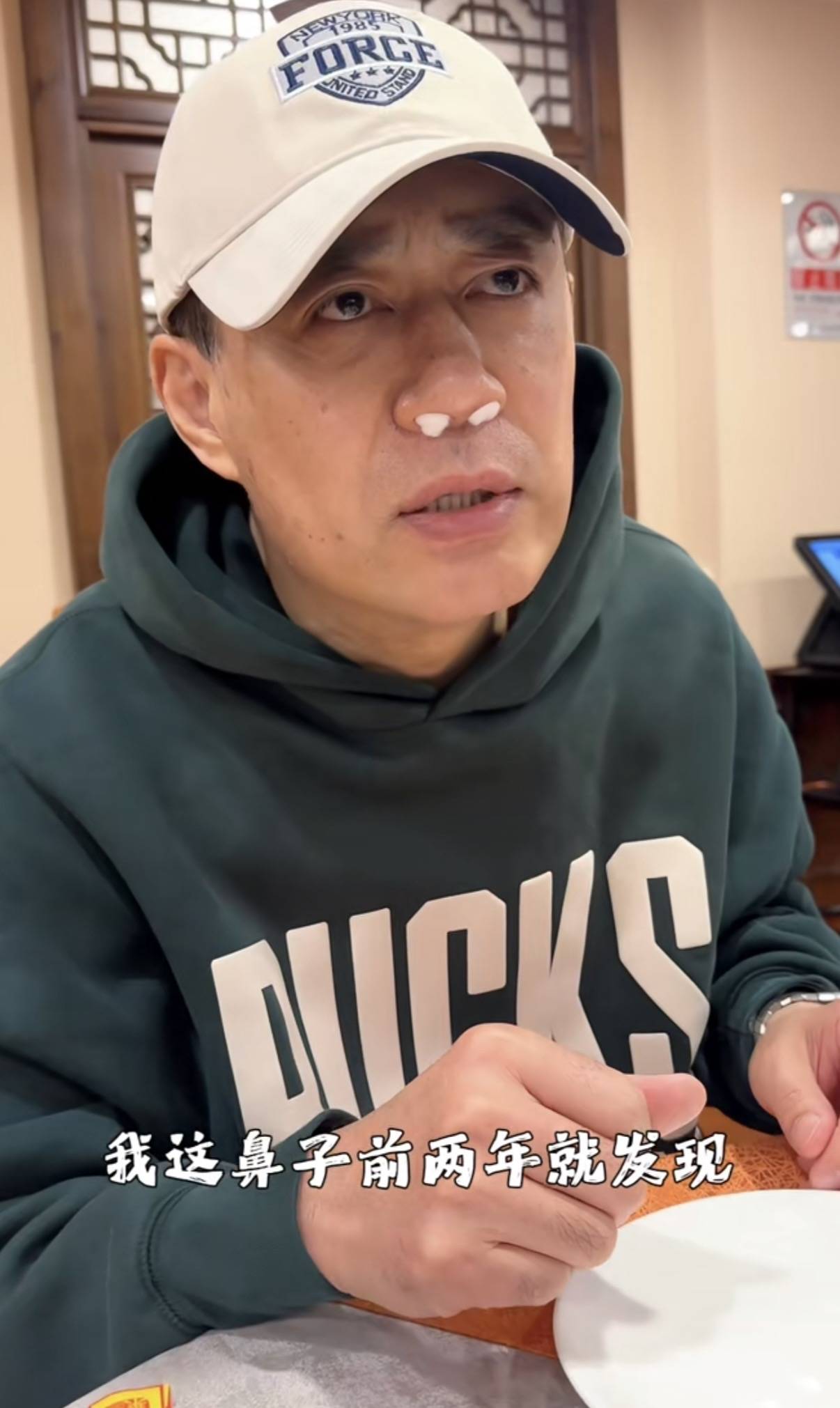 刘钧的视频中,他穿了一件墨绿色的连帽卫衣、带着棒球帽,鼻子里还塞着两个棉球。虽然是刚做完手术,但刘钧看起来气色还不错。