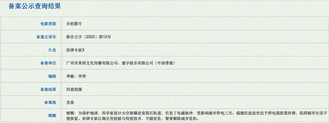《拆弹专家3》明显增加预算、制作升级,是因为第一投资方寰宇电影有底气、有信心,毕竟上一部票房13亿多,这一部有希望继续盈利。