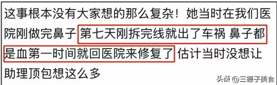 当时,她的鼻子撞得的确挺严重,虽然照片打了马赛克,但是网友隔着马赛克都能跟她共享痛觉。