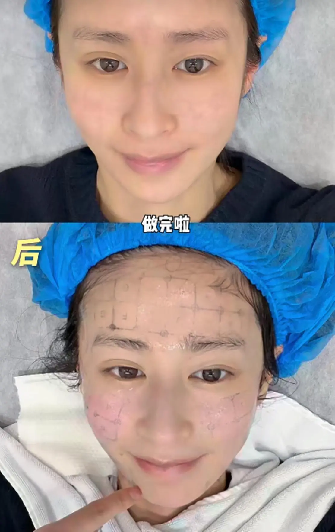 即便颖儿做了不少减少疼痛的准备,不过,在做热玛吉过程中,颖儿还是疼得失去表情管理。下图中,躺在床上的颖儿神情显得非常痛苦和紧张,她双眼紧闭,眉头紧锁,面部肌肉因疼痛而扭曲,难以忍受疼痛的她时不时还发出呼喊。