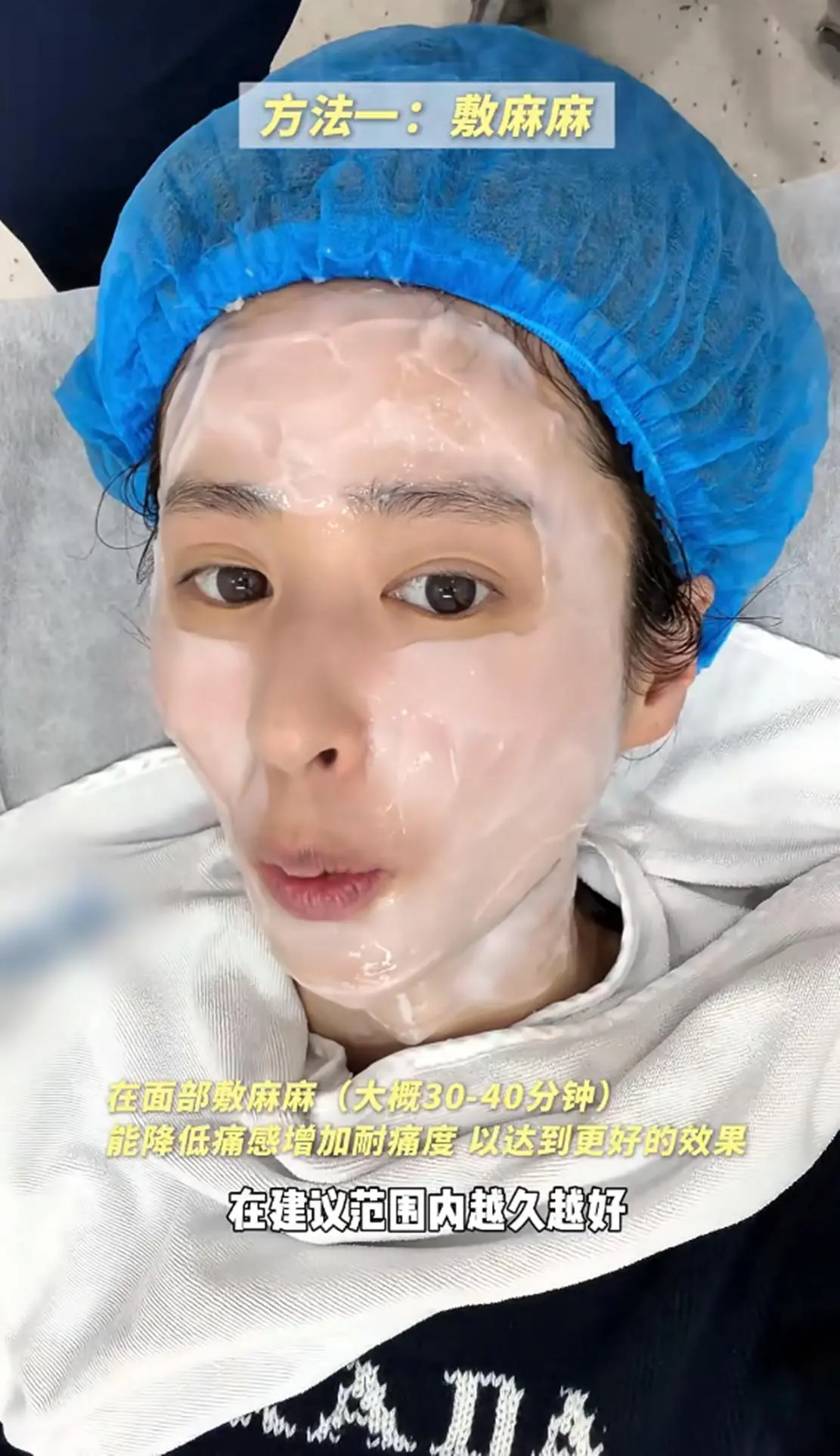 之后开始做热玛吉项目的颖儿,她还分享了做热玛吉减少疼痛的三个小方法,除了大家都知道的第一点敷麻麻外,颖儿表示在做之前10分钟可以吃止疼片还有就是捏毛绒玩具或是解压球。