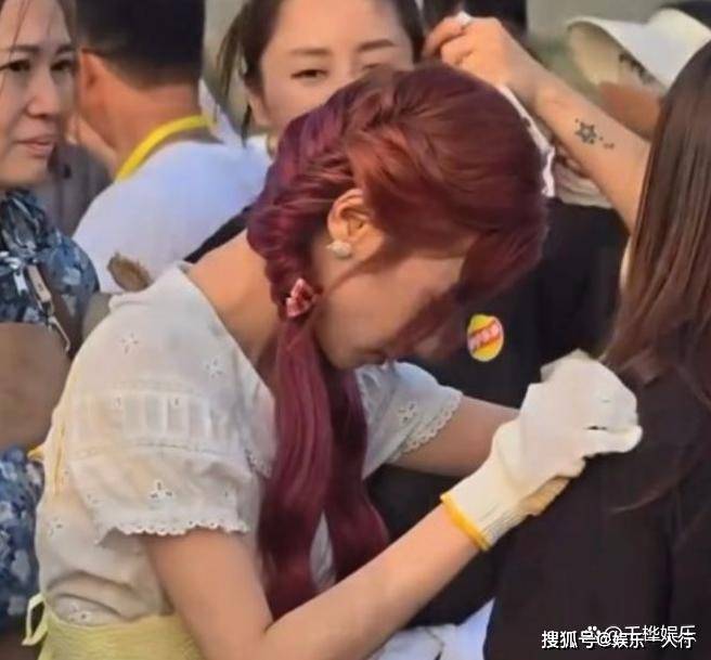 但工作没有暂停。3月23日,她按原计划飞抵湛江。在当天的品牌活动现场,高温和强光刺激下,她的不适感急剧加重。现场流出的视频和照片里,她频繁地、用力地揉按着太阳穴,面色苍白,站立时需要紧紧抓住身边工作人员的胳膊才能保持平衡,甚至一度因疼痛蜷缩起身体。即便如此,她依然强撑着完成了所有流程,直到合影环节,疲惫和痛苦已经难以掩饰。这一切,都被镜头清晰地记录了下来,成为粉丝愤怒的源头,也成了公司失职的无声证据。