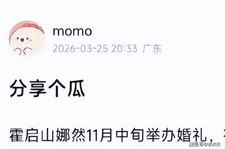 事情并不复杂,一位娱乐博主在无图无实证的情况下,就表示霍启山娜然要在海南举办婚礼,时间大概在2026年11月的中旬。