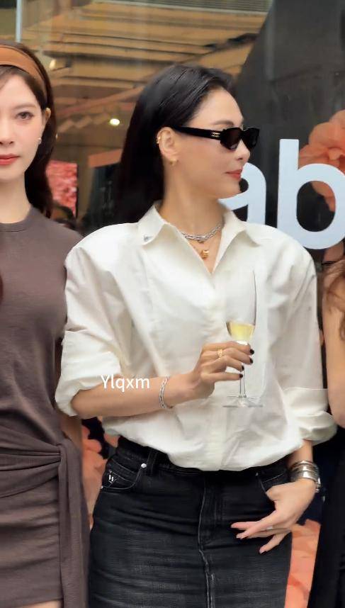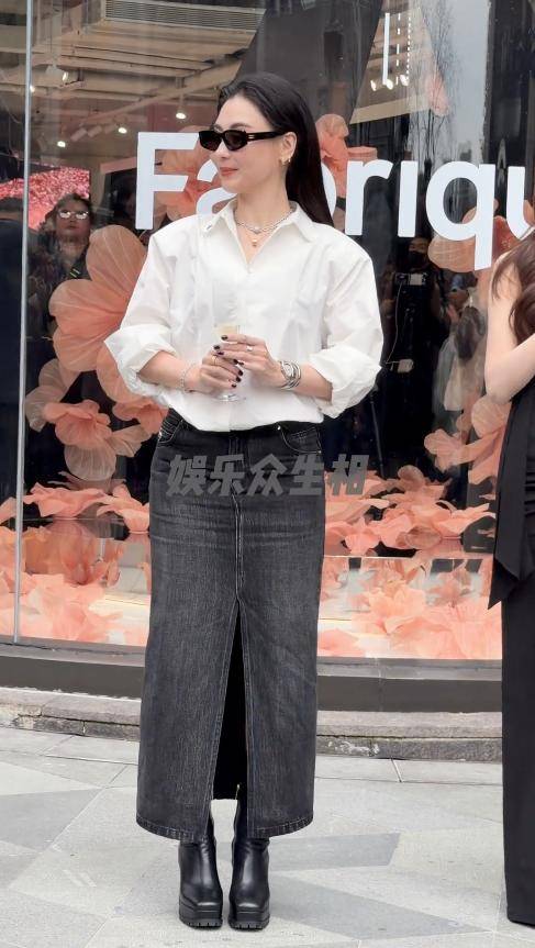 今年46岁的她,状态依旧能打,当天穿了一件简单的白衬衫,下面搭配牛仔裙,既清爽又大方。