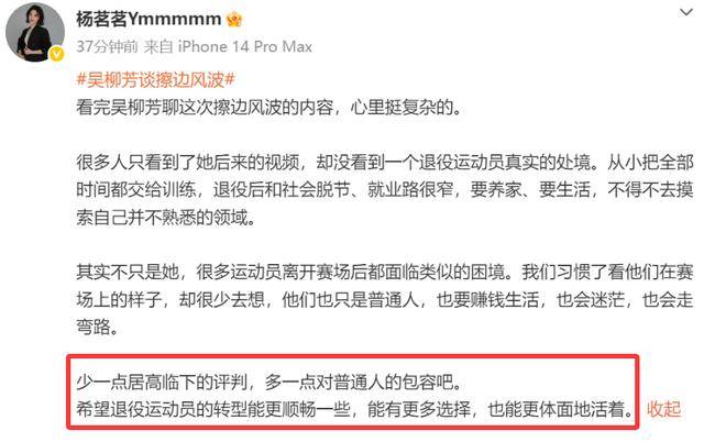 其实不只是她,很多退役运动员都有类似困境,我们习惯了看他们赛场的光芒,却忘了他们也是要赚钱生活、会迷茫走弯路的普通人。