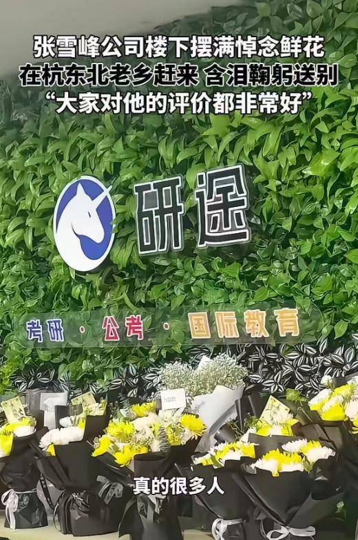另外,还有很多人没有直接去殡仪馆,而是去了张雪峰办公的地方,办公室里外都堆满了大家送去的鲜花,这足以说明张雪峰的为人。