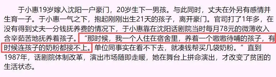 那时候她每个月只有78块钱的工资,日子过得很艰难,她住在单位宿舍里,有时候连给孩子买奶粉的钱都凑不齐,还得靠同事们凑钱接济。