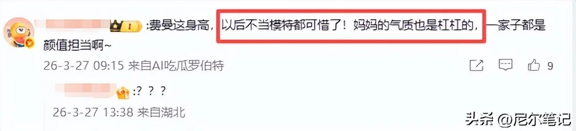 其实大家也能理解,男孩子进入青春期,外形和审美都会有自己的想法,费曼留长发,大概率也是自己喜欢这样的风格,只是这种成熟的造型,搭配他快一米九的身高,实在太容易让人误会他的年龄。