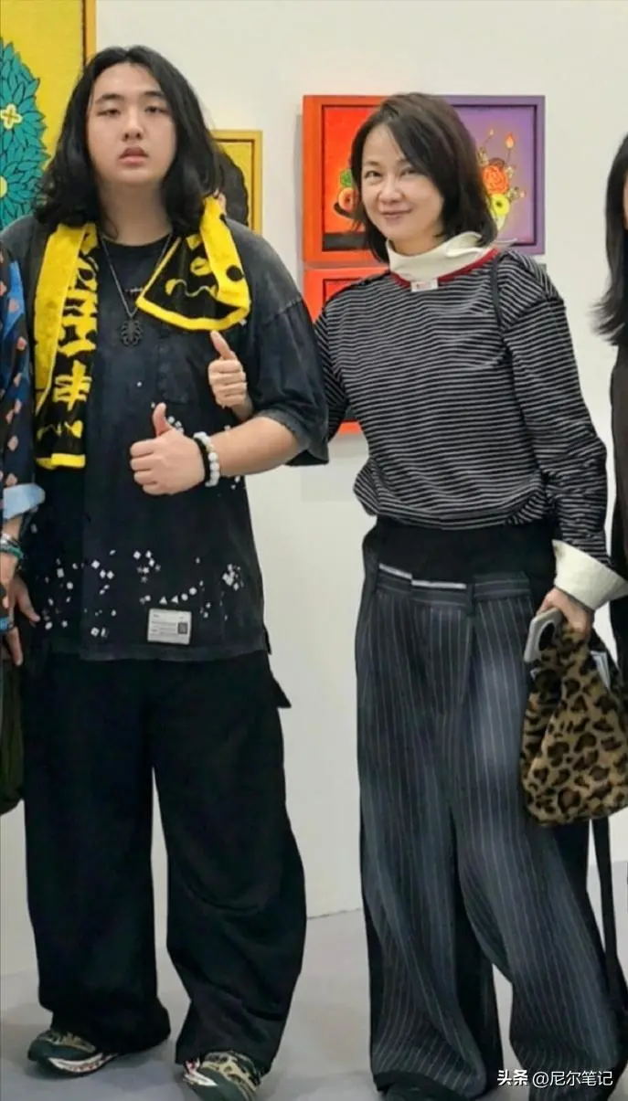 她今年已经五十六岁,息影多年,一直很低调,很少在公开场合露面,这次陪儿子看展,一身简约穿搭尽显优雅气质。