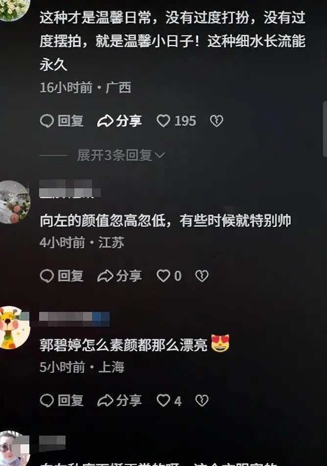 连路人缘都因为郭碧婷好了不少,网友们都说 “向太当年果然慧眼识珠,选郭碧婷做儿媳,不仅管住了向佐,还让这个家变得格外温馨”。