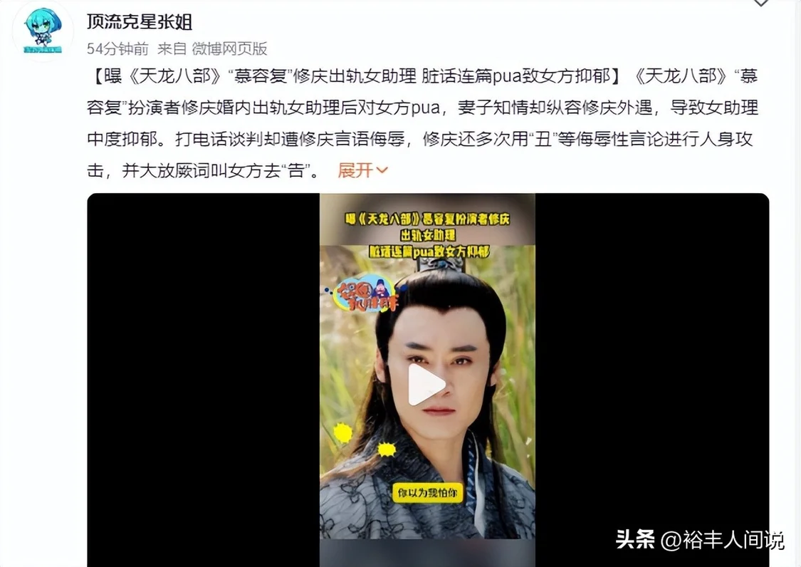 不知道不是因为背景的原因,还是不在乎,修庆表示自己不怕这个(相关曝料),还牵连到了妻子,声称相关的事件也曾告诉了妻子,但妻子表现得很平淡,还扬言要送这位女助理进监狱。
