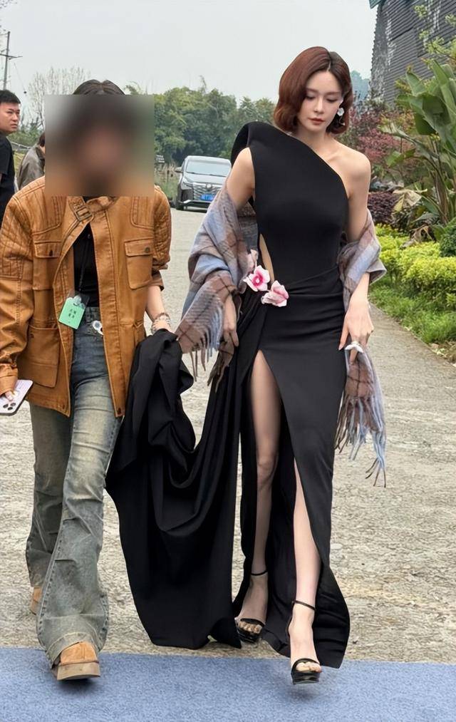 沈梦辰是早早就凭路透出圈的,当天她穿一袭斜肩黑裙,裙身缀着温柔的粉花装饰,复古大波浪卷发松松地垂在肩头,高开叉的设计刚好露出纤细的小腿,每一处细节都踩在审美上。