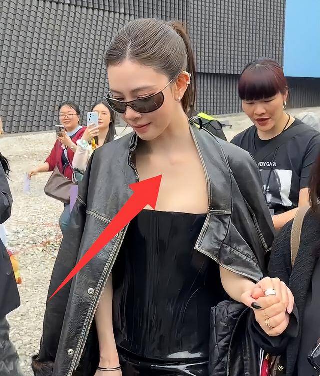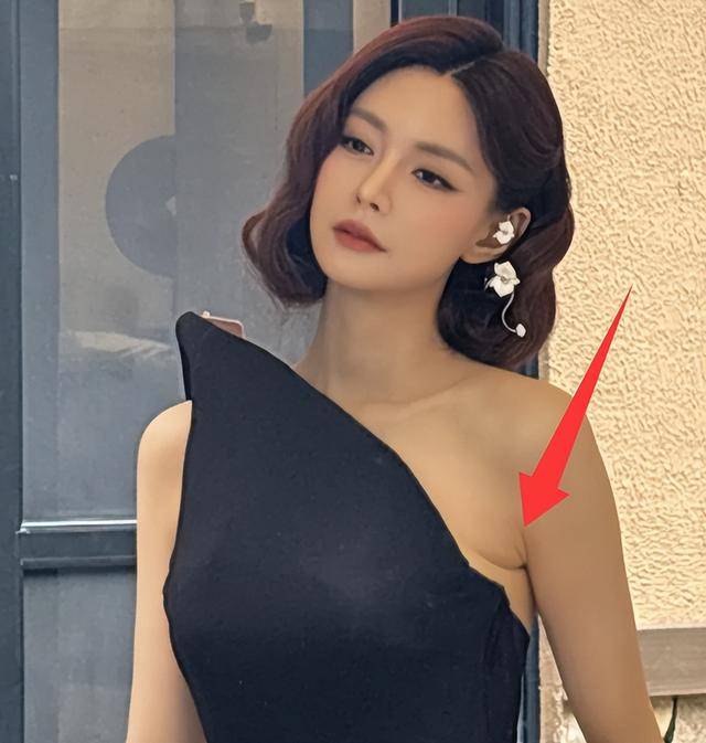 她当天的造型没找准风格,穿的衣服没贴合身形,肩膀看着宽宽的,脖颈处平平整整的,完全看不到锁骨的痕迹。