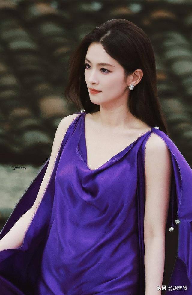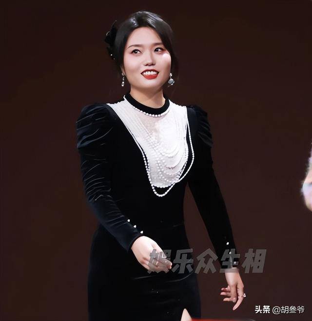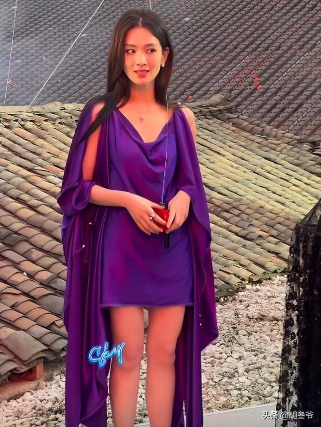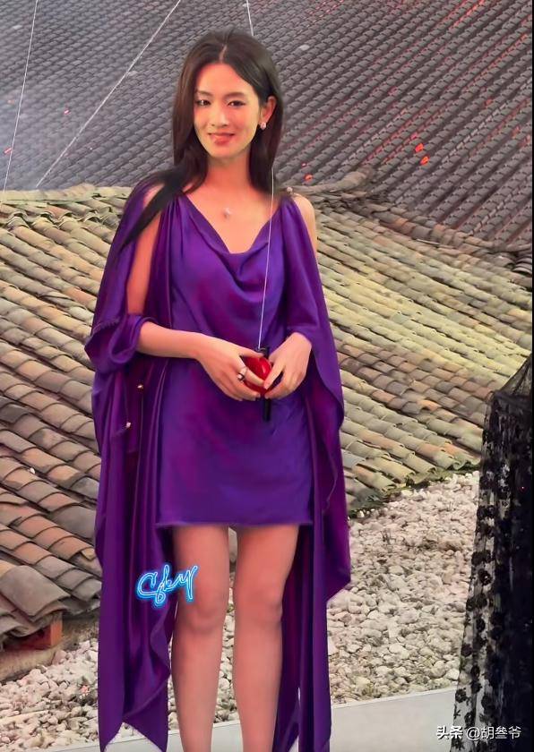 可现场的镜头里,这身高定礼服却完全没穿出质感,紫色的缎面材质在灯光下显得特别廉价。