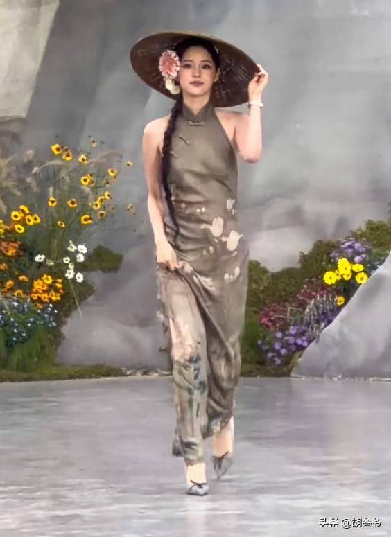 欧阳娜娜的身形属于匀称型,不胖也不瘦,结果她在红毯上还换了一身挂脖旗袍,这身衣服直接把她的身材短板暴露无遗。