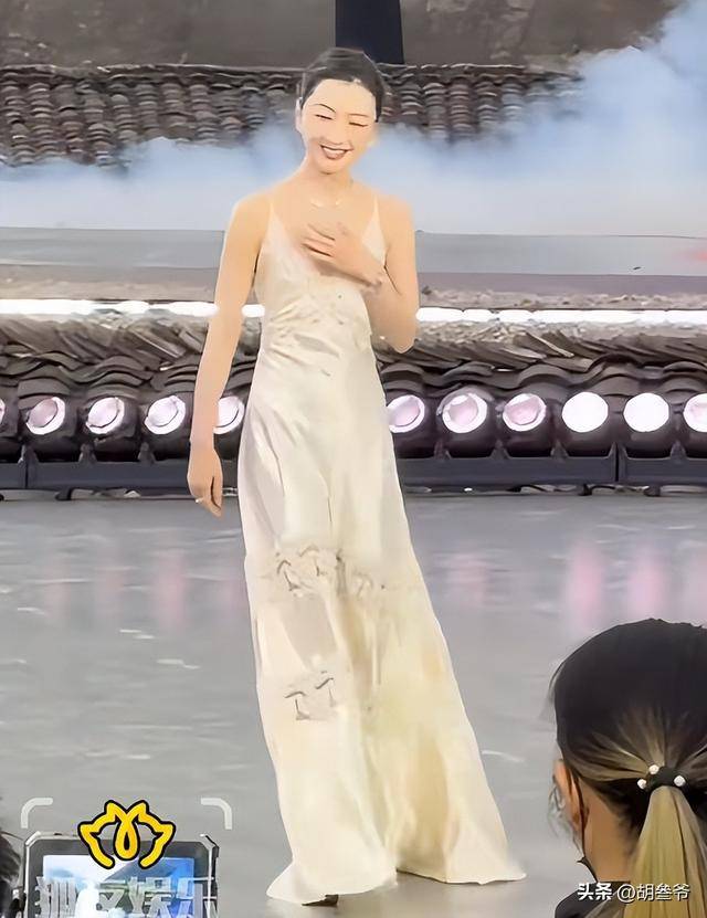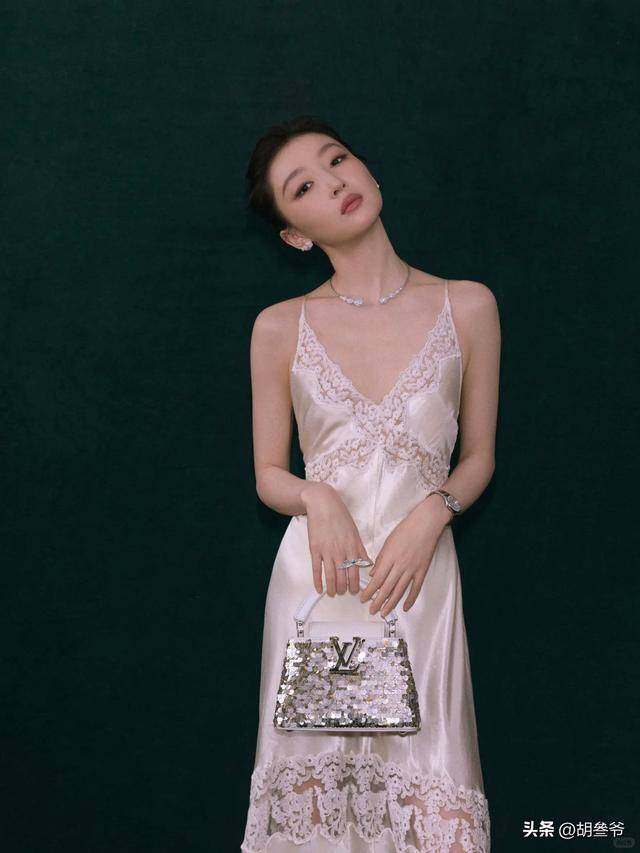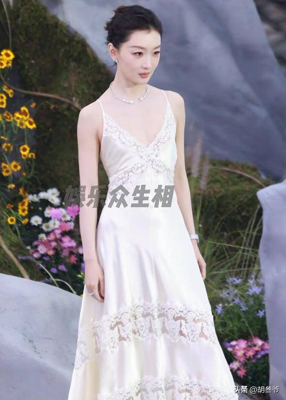 她这次穿了一身白色吊带鱼尾裙,精修图里看着清冷优雅,还被夸“高级感十足”。