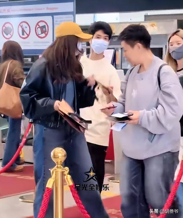 只见在曝光的画面中,刘芸忙着核对登机信息、处理出行手续,Jagger自己背着书包跟在身后。