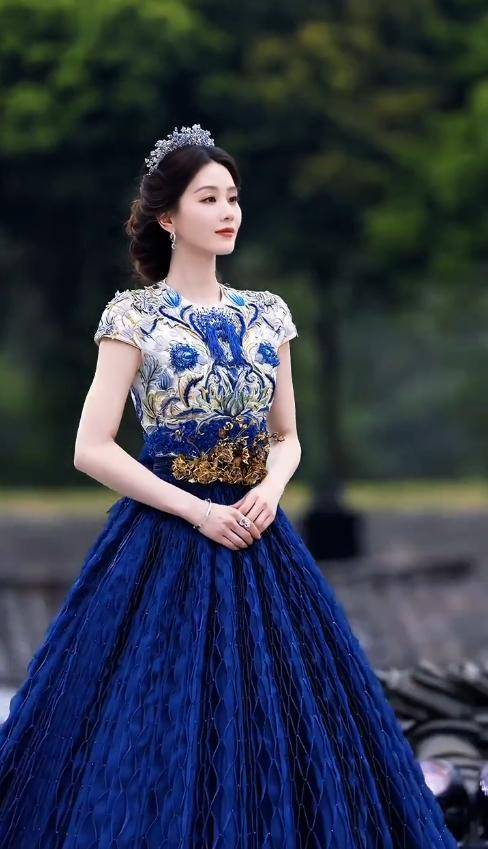 她的头发轻轻挽起,没有多余的装饰,头上还带了一顶皇冠。仿佛从水墨画卷中走出来的仙子。