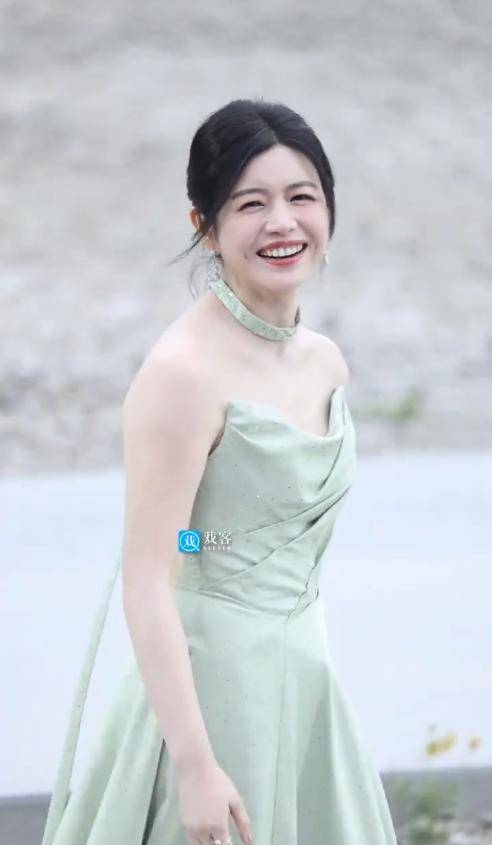 头发打理成复古波浪卷,和礼裙遥相呼应,眉眼间带着几分温婉,又藏着一丝飒气。