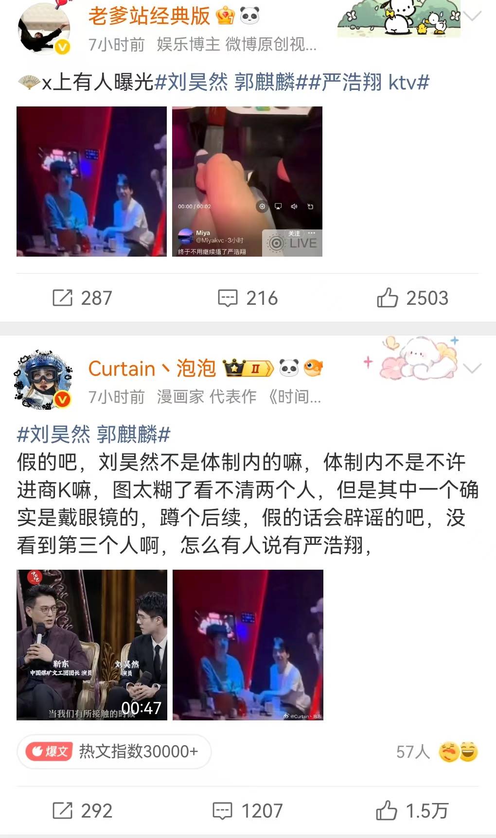 3月27日,一组模糊的KTV路透照突然引爆全网,照片中两人身形、穿搭神似刘昊然与郭麒麟,可正脸模糊到难以辨认,谁能料到,这场不明不白的路透,竟让刘昊然陷入无妄之灾,被网友骂上热搜,
