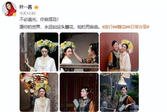 今年 2 月,叶一茜特意带森碟回福州拍簪花照,母女俩穿着中式服饰,画面温婉好看。