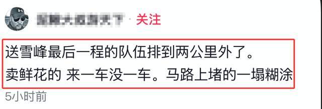 用十里相送来形容张雪峰追悼会虽然有些“夸张”,但实际情况也差不了多少。有路过的网友透露,当天的车子从殡仪馆开始一直持续到吴中大道,排队的人员更是多达两公里开外,这样的规模,足可说明张雪峰在诸多学子心中的地位。