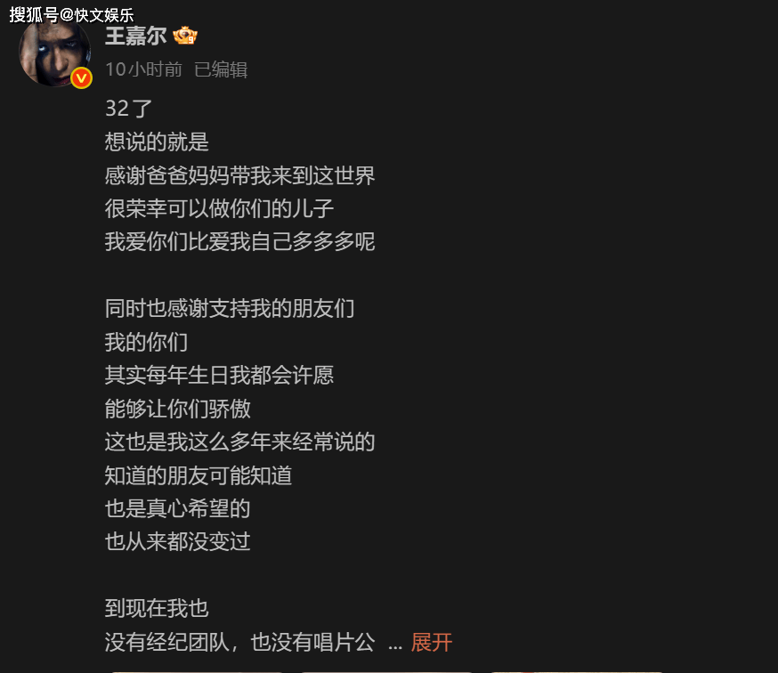 娱乐圈又迎来了一则让人热议的消息——王嘉尔在32岁生日这天发了一篇长文,字里行间充满了感恩与坦诚。