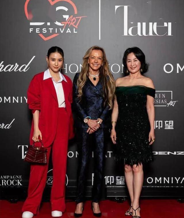她还和姐姐何超琼、肖邦总裁Caroline Scheufele合影留念。照片里,Caroline Scheufele站在中间,一头长金发披肩,身穿刺绣套装,双手放在身前,笑容灿烂。何超莲和何超琼站在左右两边,一个站姿酷酷的,一个得体,各有各的美。