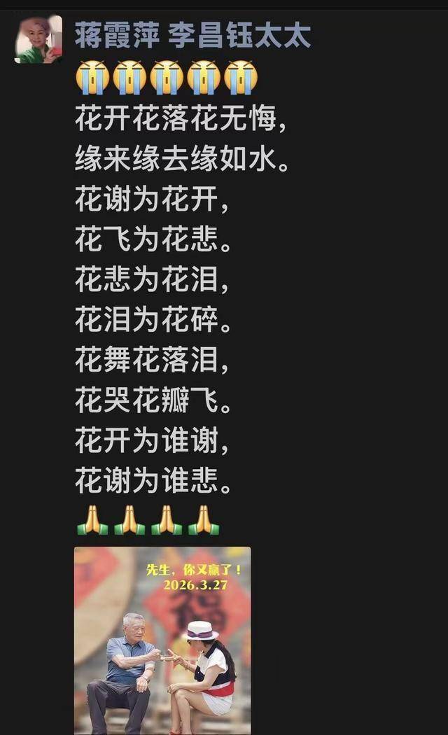 现任太太蒋霞萍发文悼念。