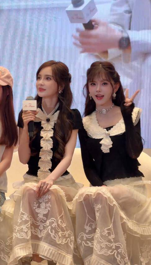远看过去,两人就像一对亲姐妹,凑近了才能看出细微差别——杨颖的美是自带的明星气场,韩安冉则多了几分刻意模仿的痕迹。