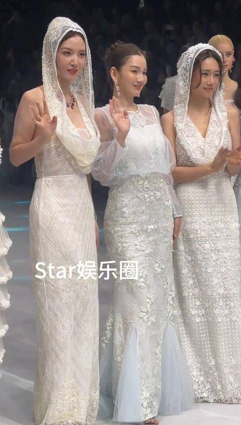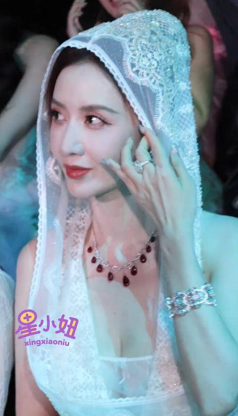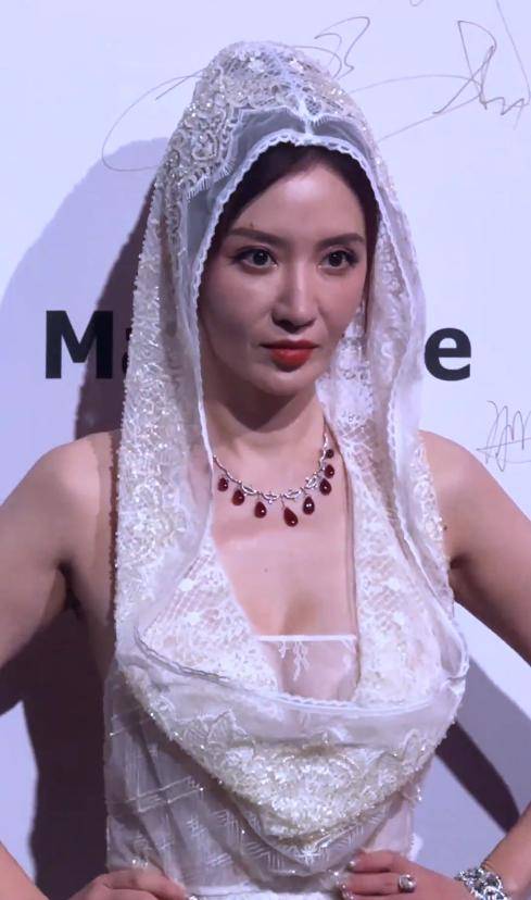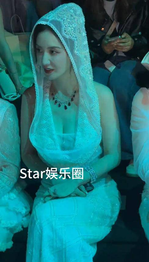 刘芸的这件白色礼服,同样是蕾丝材质,还加了带帽的小心思,单看款式设计其实挺有想法。