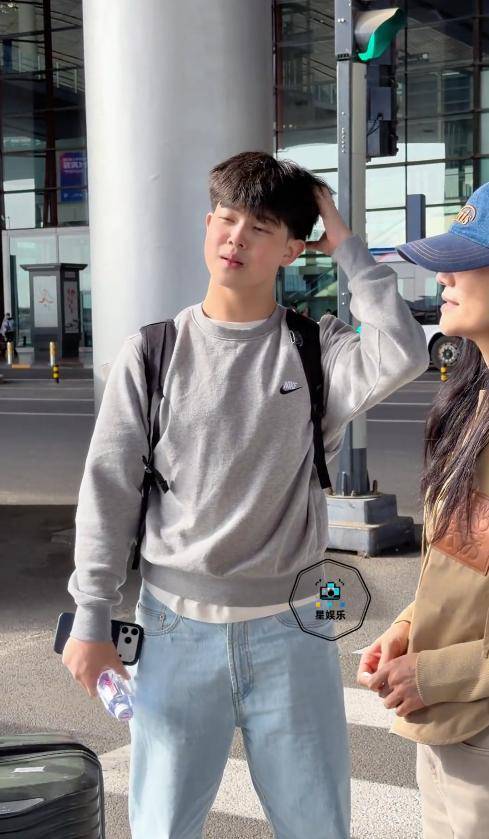 他当天穿了一件灰色圆领卫衣,搭配浅蓝色牛仔裤,背着一个黑色双肩包,穿搭简单干净,浑身透着少年的清爽感。
