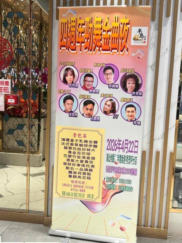 近日有酒楼预告,4月底将邀请刘锡贤、李锦联、《爱回家》“群姐”许思敏、《中年好声音4》五灯歌手彭梓嘉到场唱歌助庆。
