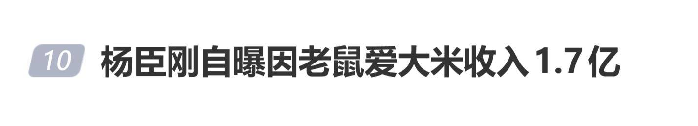 而真正让网友直呼“破防”的,还是他早年自曝的“神曲收益”。杨臣刚曾在某节目上透露,在歌曲最火爆的时期,他一个月能连开30场演唱会,单凭《老鼠爱大米》这一首歌,总收入就高达1.7亿元。这个数字放在今天,也足以让很多音乐人望尘莫及,堪称初代网络音乐“变现之王”。