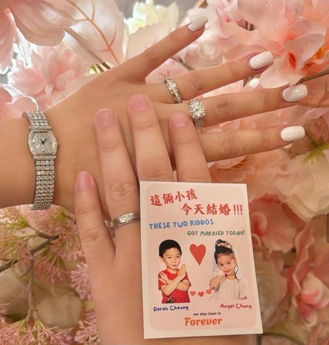 有趣的是,庄雅婷不仅仅分享了结婚钻戒,同时还分享了一张两人结婚的卡片,但并非结婚证。