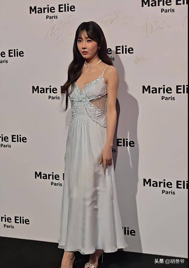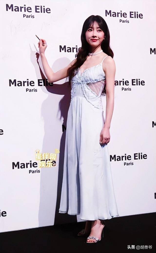 宣璐算是现场最特殊的一个,别人都穿蕾丝裙赶潮流,她却选了一身淡蓝色真丝吊带裙,瞬间和现场的时尚氛围格格不入。