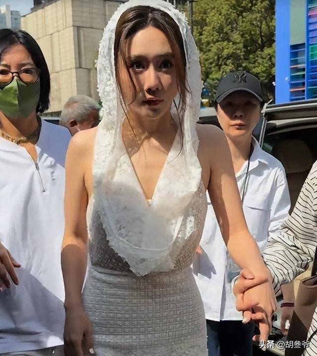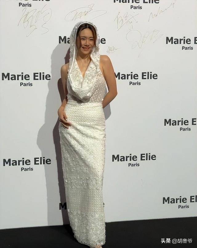 刘芸这次的造型算是彻底栽了,她选的白色挂脖蕾丝镶钻连衣裙。