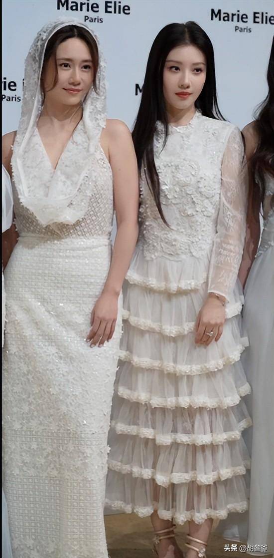 王鹤润同样选了白色蕾丝裙,却是长袖的蛋糕裙款式,下裙摆的蛋糕层设计少女感拉满,瞬间把年龄感藏了起来。