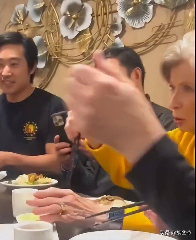 视频里的琳达已经81岁了,穿着一身素雅的浅色衣服,和李小龙的一众武术弟子围坐在茶桌旁闲谈。