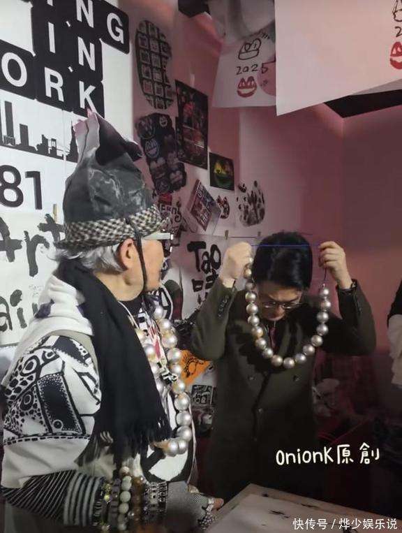 蛙王的展馆非常有趣,进入后简直像进入了一个玩乐的世界,参观者可以随便摆弄那些小玩意,制造出各种奇妙的造型。徐子淇和李家诚完全放松了自己,俩人玩得不亦乐乎,活脱脱和一贯的严肃形象判若两人。所谓试造型就是把那些装饰品随意搭配到身上,创造出独一无二的效果。徐子淇当天戴了一条极为夸张的大珍珠项链,脖子上挂得满满的,手里还拿着一个插着花的绿色瓶子,看起来十分别致,甚至有些时尚玩味。她自己也觉得这个造型搞笑,笑得合不拢嘴,眼睛到处乱看,显得异常兴奋,整个人的气场也完全放松了。李家诚当然也没闲着,和艺术家一起合影时,他也戴上了同款的大珍珠项链,笑容灿烂,显得开心极了,估计很久没这么放松过了。