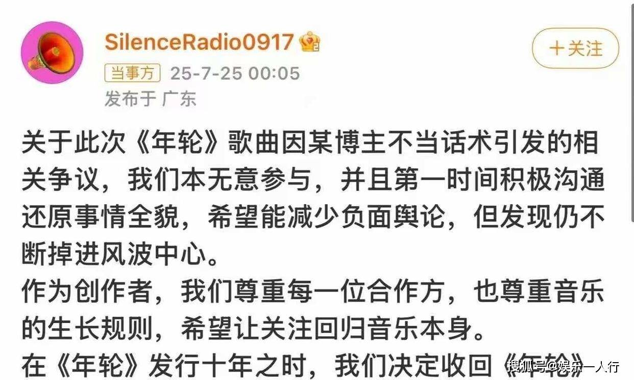 这已经不是汪苏泷第一次在版权问题上“受伤”了。就在去年,他还曾卷入与张碧晨关于歌曲《年轮》的“唯一原唱”争议。当时张碧晨工作室的声明,直接刺激汪苏泷收回了《年轮》的演唱授权。一个对自身创作权益如此敏感和坚持的音乐人,面对合作十余年的老友在万人舞台上抹去自己名字,心里会是什么滋味?有粉丝翻出旧账,提到《后会无期》这首歌,甚至是当年汪苏泷“催着”徐良一起写的,被徐良本人认证为自己专辑里“最火的一首”。从共同熬夜40小时打磨旋律和歌词,到如今名字在对方的舞台上“被消失”,这种落差,恐怕比任何公开的指责都更伤人。