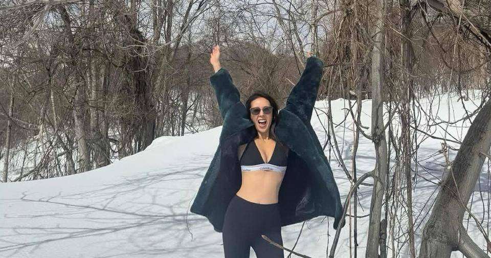 43岁的梁靖琪最近又因一组照片火速冲上热搜榜。在日本二世古的皑皑雪地里,她只穿着黑色运动内衣,外套随意松垮地系在腰间,背后是纯白雪地与零散枯树的静谧景象。她的肌肤紧致