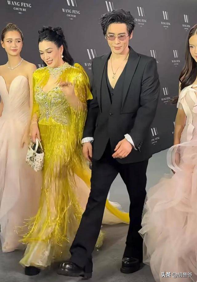 钟丽缇当天穿了一身亮黄色的流苏长裙,饱和度极高的黄色在红毯上格外扎眼。