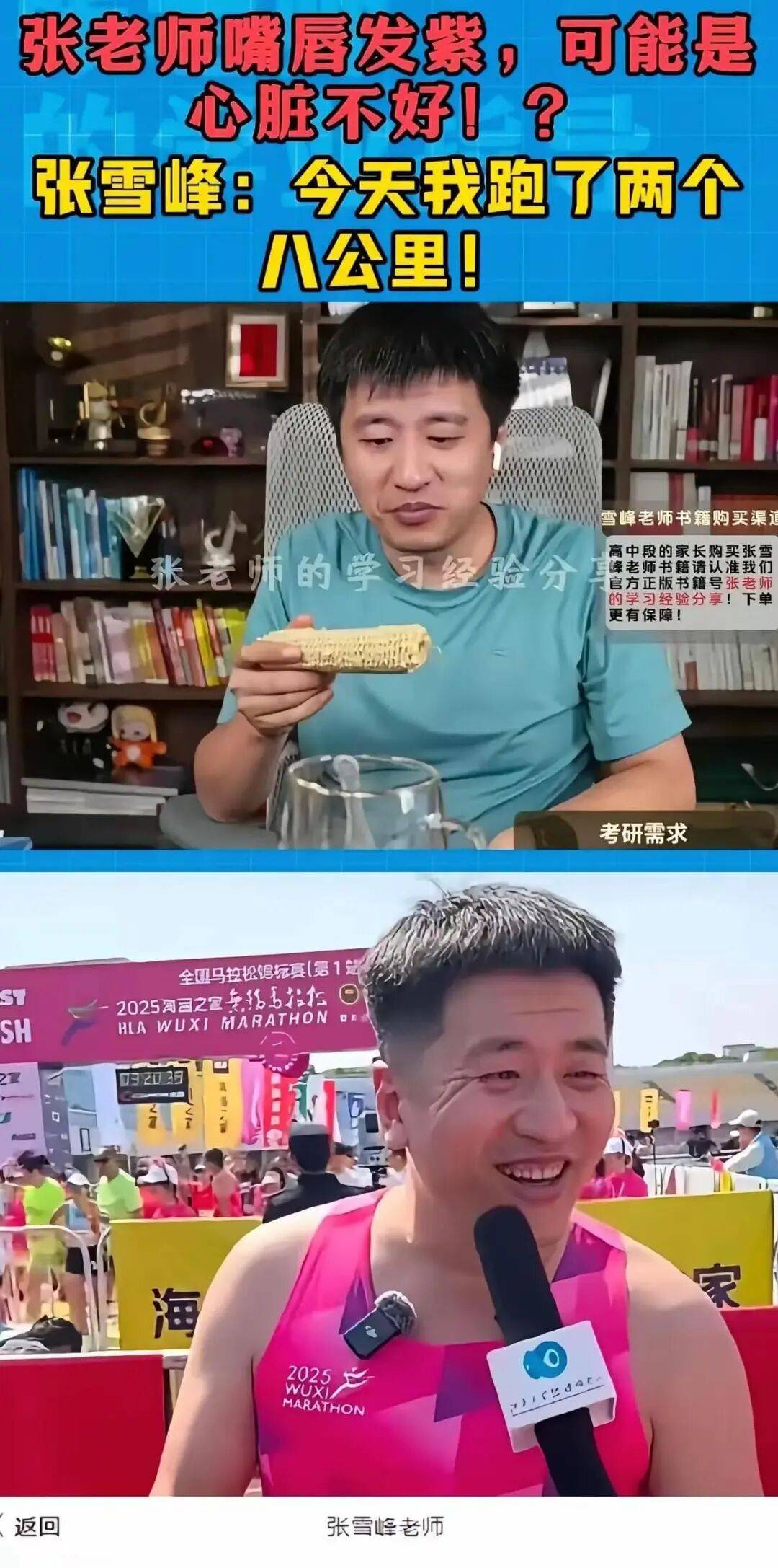 他甚至当场晒出了自己的跑步战绩:“我今天跑了两个8公里,全天16公里!全马4小时,半马1小时47分!你跟我说我心脏不好?”