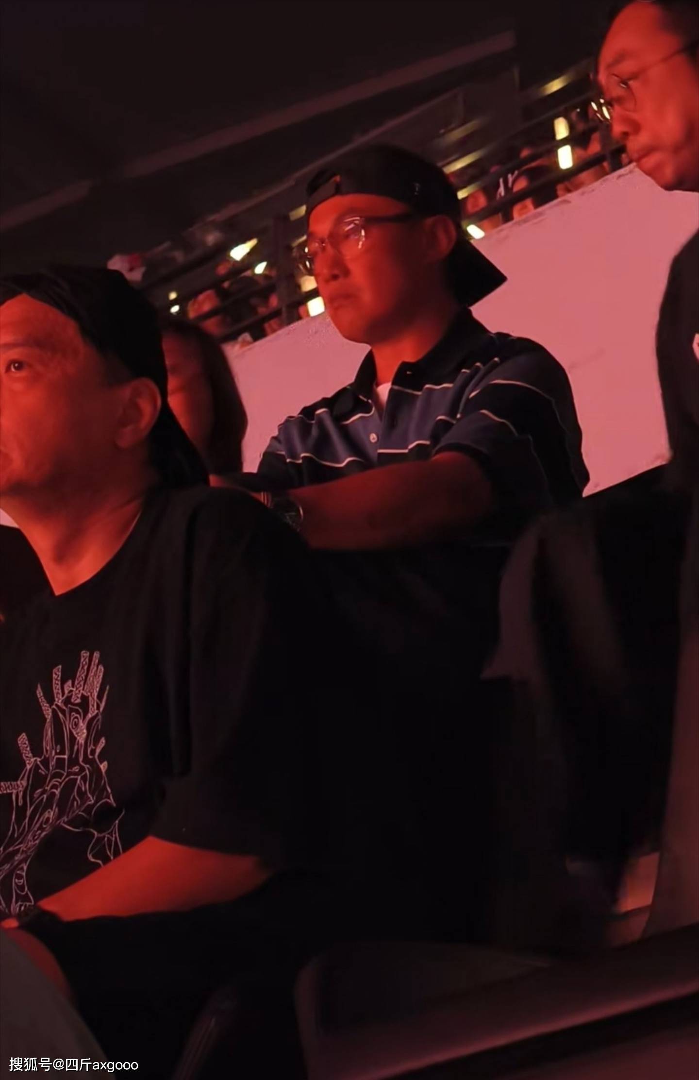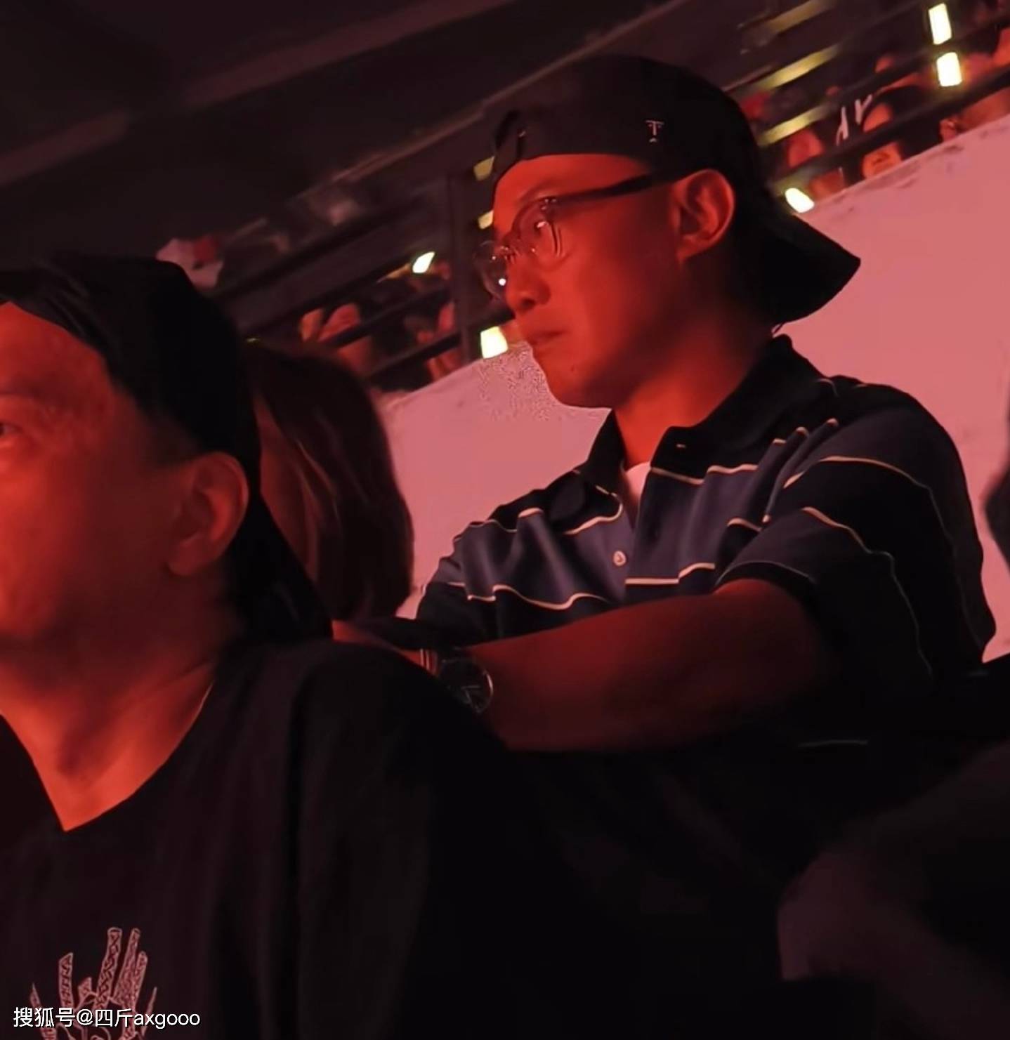 我看了一下网友分享的画面,陈奕迅在台下戴着帽子,表情十分严肃。