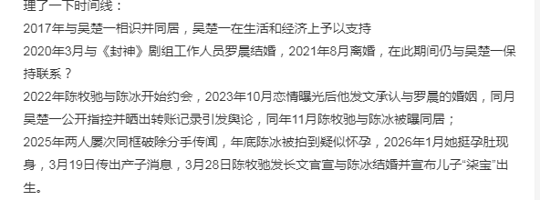 近三年,陈牧驰并无新影视资源;吴楚一在官宣后表态"人要有翻篇能力";陈冰家族被曝涉经济纠纷,尚没有司法终审的结论。